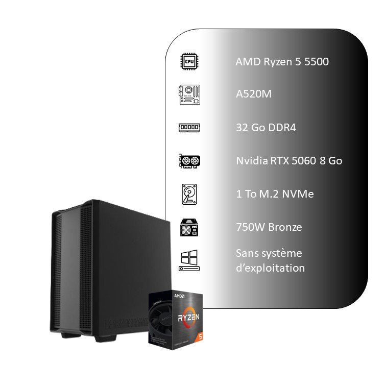 NVIDIA RTX 5060 – AMD Ryzen 5 5500 – 1 To SSD NVMe – 32 Go RAM