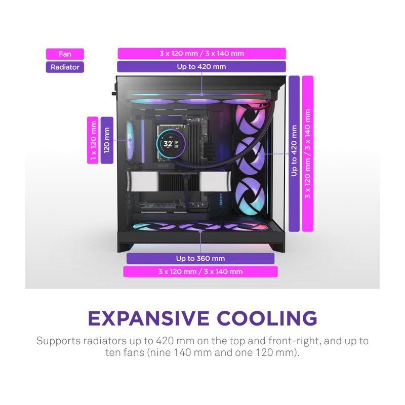 NZXT H9 Flow RGB (CM-H92FB-R1) Dual-Chamber Mid-Tower Case w/ RGB Fans – All Bla
